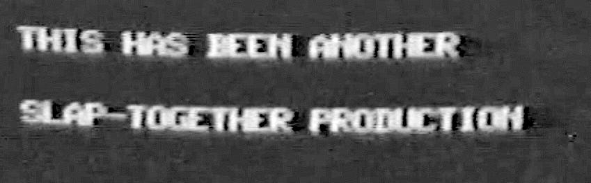 IMAGE: A screen grab from one of our productions. We typed the credits on a TRS-80 and shot the screen with a black and white, reel-to-reel video camera.